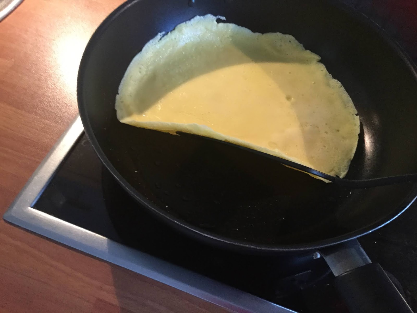 Sekoita ainekset huolella. Kuumenna paistinpannu ja lisää sille kookosöljyä tai voita. Kaada taikinaa ohuelti pannun pohjalle, levitä nopeasti kääntelemällä pannua ilmassa. Pienennä levyn kuumuutta – nämä ohuesta taikinasta tehdyt letut käryävät helposti. Paista pari minuuttia per puoli, ja toista kunnes taikina on loppu. Lettujen koon voit valita luonnollisesti itse.