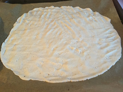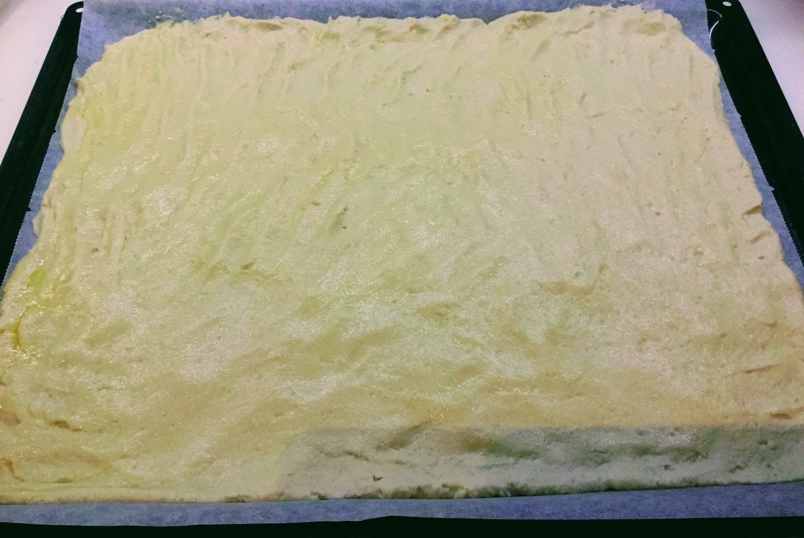 Taikina on tässä vaiheessa hyvin kosteaa ja löysähköä, mutta öljyisillä käsillä sen saa levitettyä ilman tarttumista. Jos levittäminen tuntuu ihan mahdottomalta, lisää taikinan päälle hieman jauhoja.