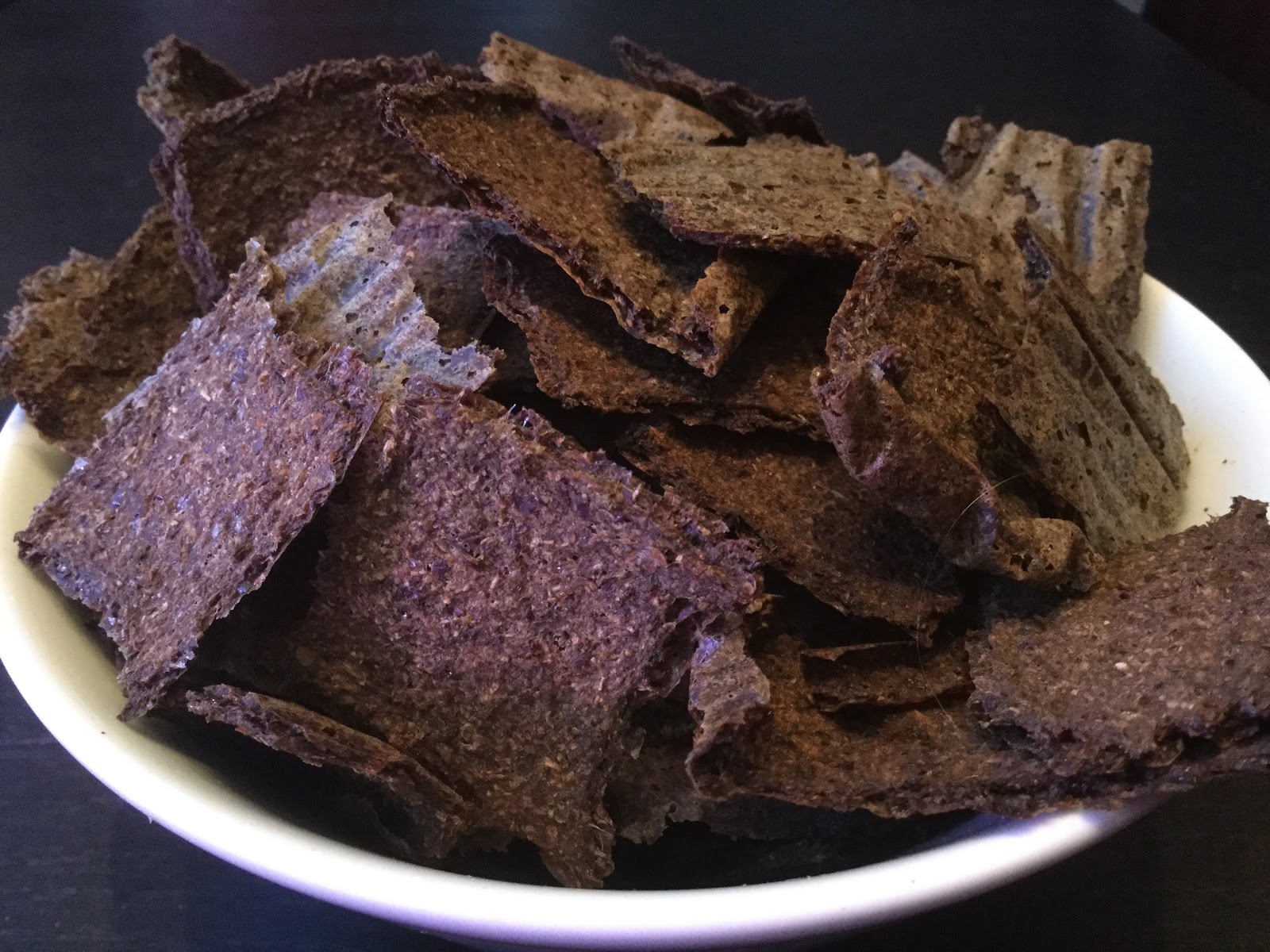 Valmiissa sipseissä kasvikset eivät juuri erotu, vaan lopputuloksessa huomion vievät mausteet ja pellavarouhe, jonka tumma täyteläinen maku tuo itse asiassa mieleen ruissipsit.