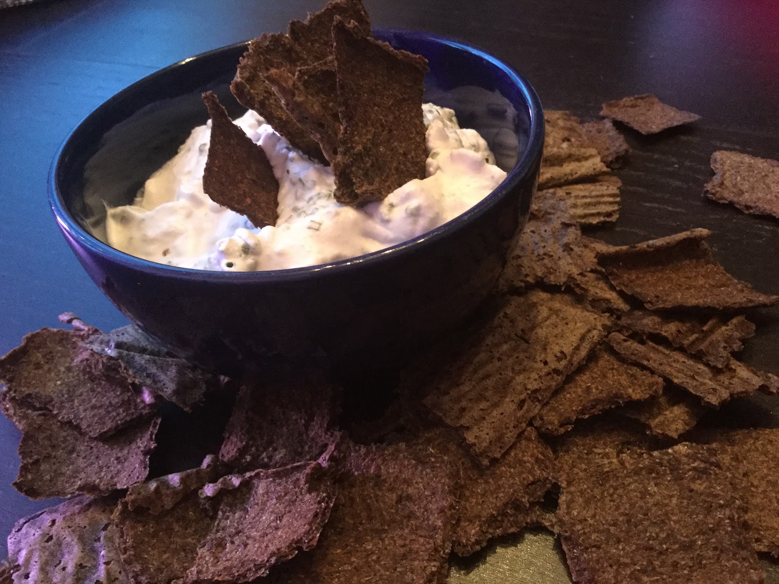 Rouskuvat kasvissipsit ja maidoton sour cream – dippi