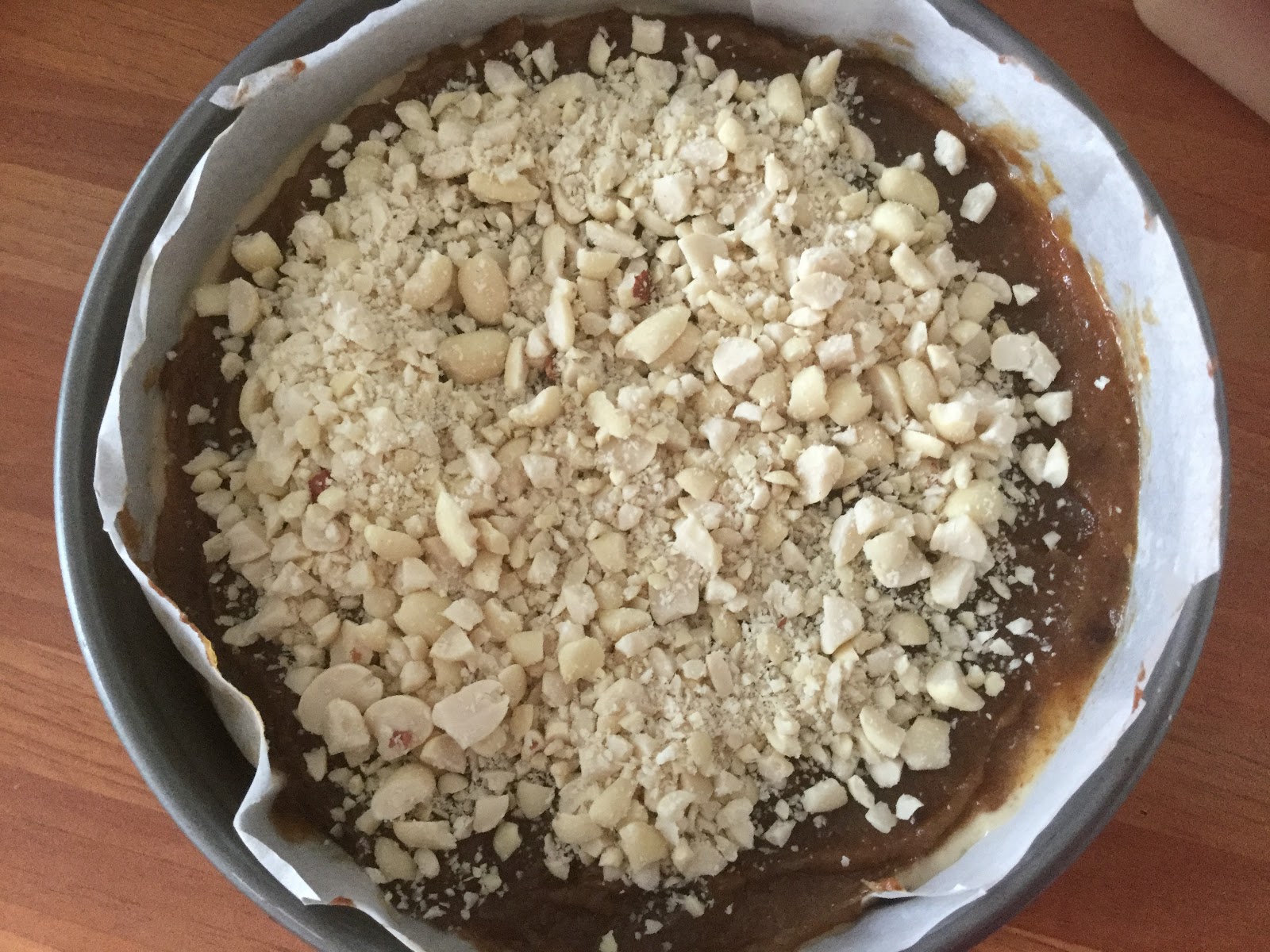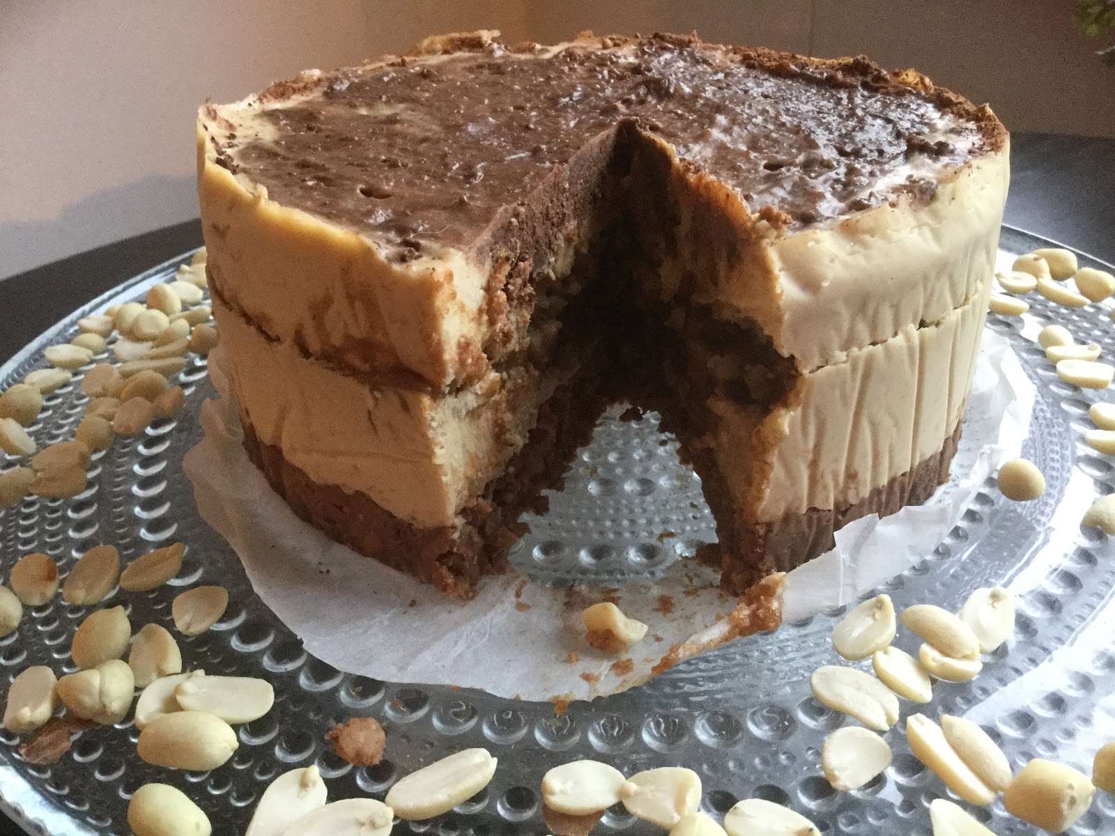 Pari juttua: jotta kakku on todella raaka, muista sulattaa kookosöljy ja raakakaakaovoi vesihauteessa, jolloin ne eivät pääse kuumenemaan liikaa. Liota pähkinöitä (paitsi kinuskin päälle tulevia maapähkinöitä) ja taateleita ainakin muutama tunti ennen kakun valmistusta. Itse liotin niitä yön yli. Jos liottamisaika jää lyhyemmäksi, lisää hieman nesteiden määrää, jotta saat täytteistä sileitä.
