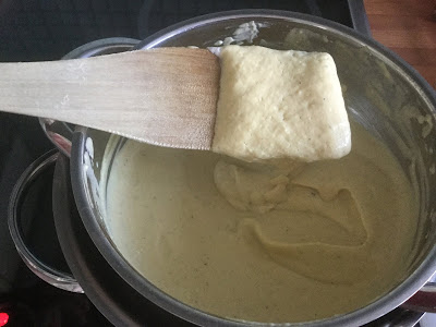 Kun ainekset ovat sekaisin, nosta kattila ison kiehuvalla vedellä täytetyn kattilan sisään/päälle. Anna veden kiehua hiljalleen ja sekoittele jäätelöseosta rauhassa niin kauan, että se alkaa paksuuntua ja muistuttaa koostumukseltaan jäätelöä. Tähän pitäisi kulua noin vartti.