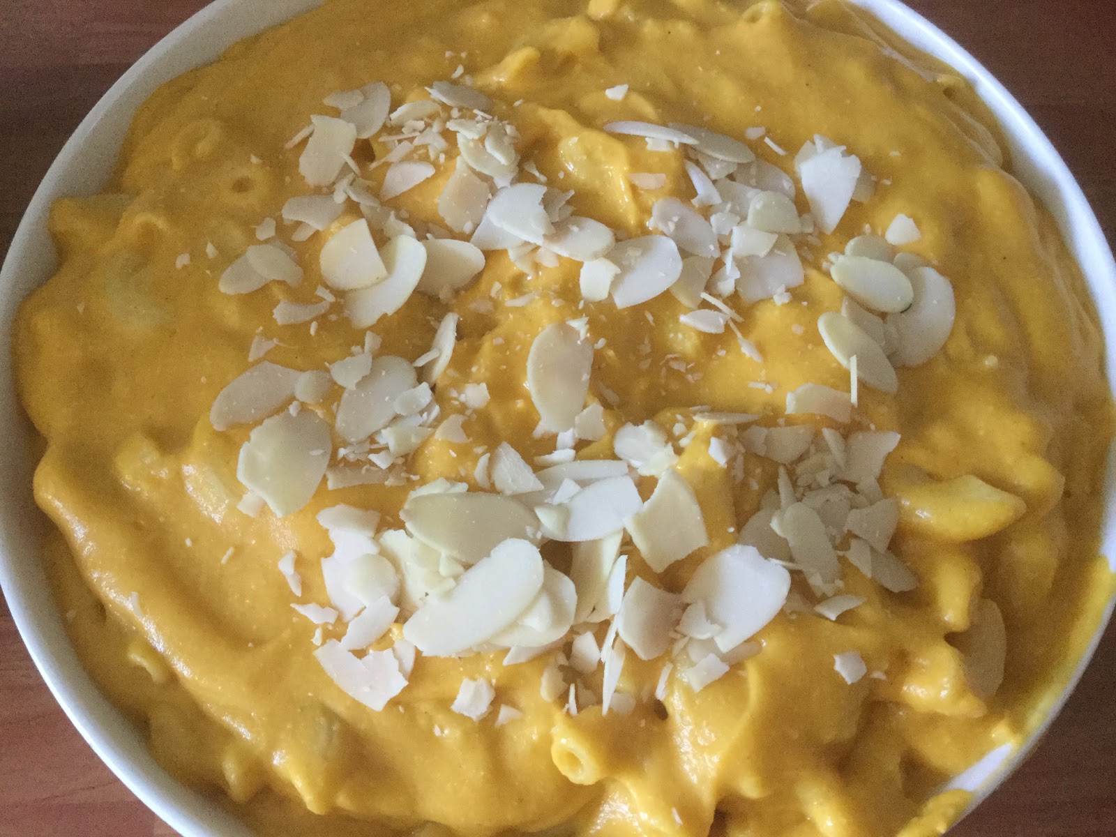 Tämä versio maistuu täyteläisen kermaiselle ja juustoiselle, mutta on täysin vegaaninen, gluteeniton ja sisältää jopa hieman kasviksia! Alkuperäinen resepti on Vegan yumminess – sivustolta. Olen varioinut sitä hieman.