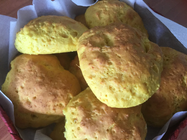 Sahrami on kenties lempimausteeni (kardemumman lisäksi!), mutta sitä tulee käytettyä valitettavan harvoin. Syynä ei ole pelkkä hinta, sillä vaikka sahramin kilohinta onkin huima, ei se pieni pussukka nyt ihan hirveästi vielä maksa. Kenties kyse on enemmän siitä, ettei sahramia ole yleensä maustelaatikossa valmiina, ja spontaanit kokkailuhetket pakottavat turvautumaan valmiiksi löytyviin mausteisiin? Oli syy mikä tahansa, nyt kirjoitin sahramin ihan kauppalistaan, sillä mieleni teki aivan valtavasti näitä meheviä, kuohkeita, lämpimiä sämpylöitä! Ja kyllä kannatti, sillä nämä sahramisämpylät ovat aivan ihania!