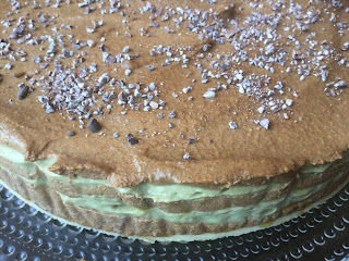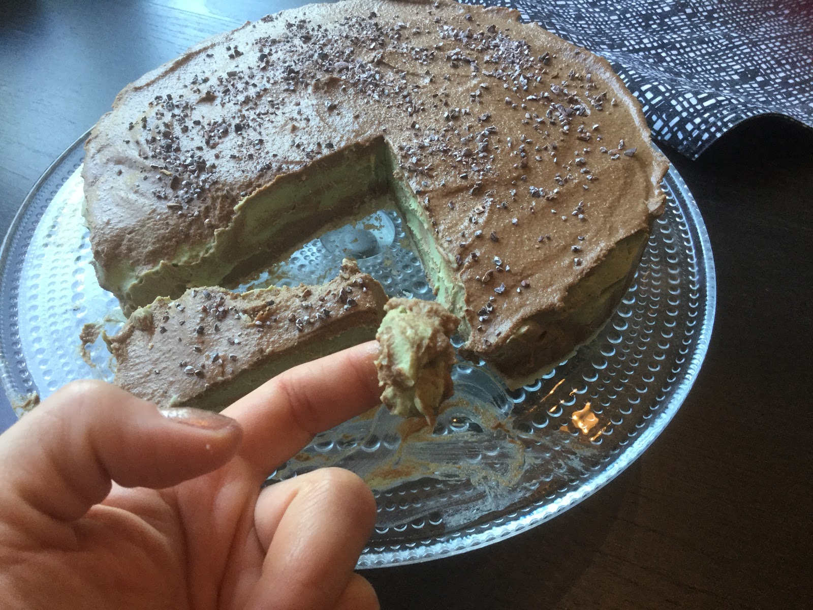 Kerrostamista voi toki nopeuttaa laittamalla kaiken minttutäytteen vain yhdeksi kerrokseksi, ja jakamalla suklaan sen alle ja päälle. Päätä itse mikä viitseliäisyystasosi on. Jos vain maltat, suosittelen kerrostamaan enemmän, jolloin mintun maku leviää ihanasti joka puolelle kakkua! Suklaakerros kannattaa jättää päällimmäiseksi.