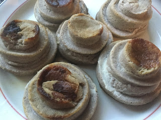 Tällaisenaan muffinit ovat melko…noh, rumia. Mutta usko pois että maukkaita! Lisäksi niistä saa erityisen söpöjä ja entistä herkullisempia lisäämällä kuorrutteen ja erilaisia koristeita, kuten pähkinärouhetta, kookoshiutaleita ja suklaata.