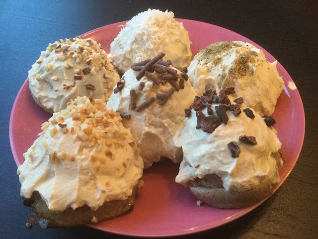Minä ripottelin kuorrutteen pinnalle vielä pikkuhyvää, kuten kookoshiutaleita, kaakaonibsejä ja pähkinärouhetta.