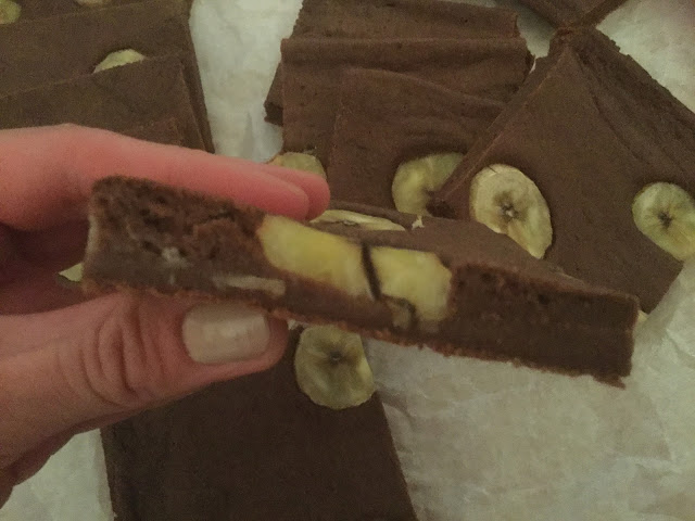 Banaanisuklaabrowniet. Proteiinilisällä. Piste. (G, M)