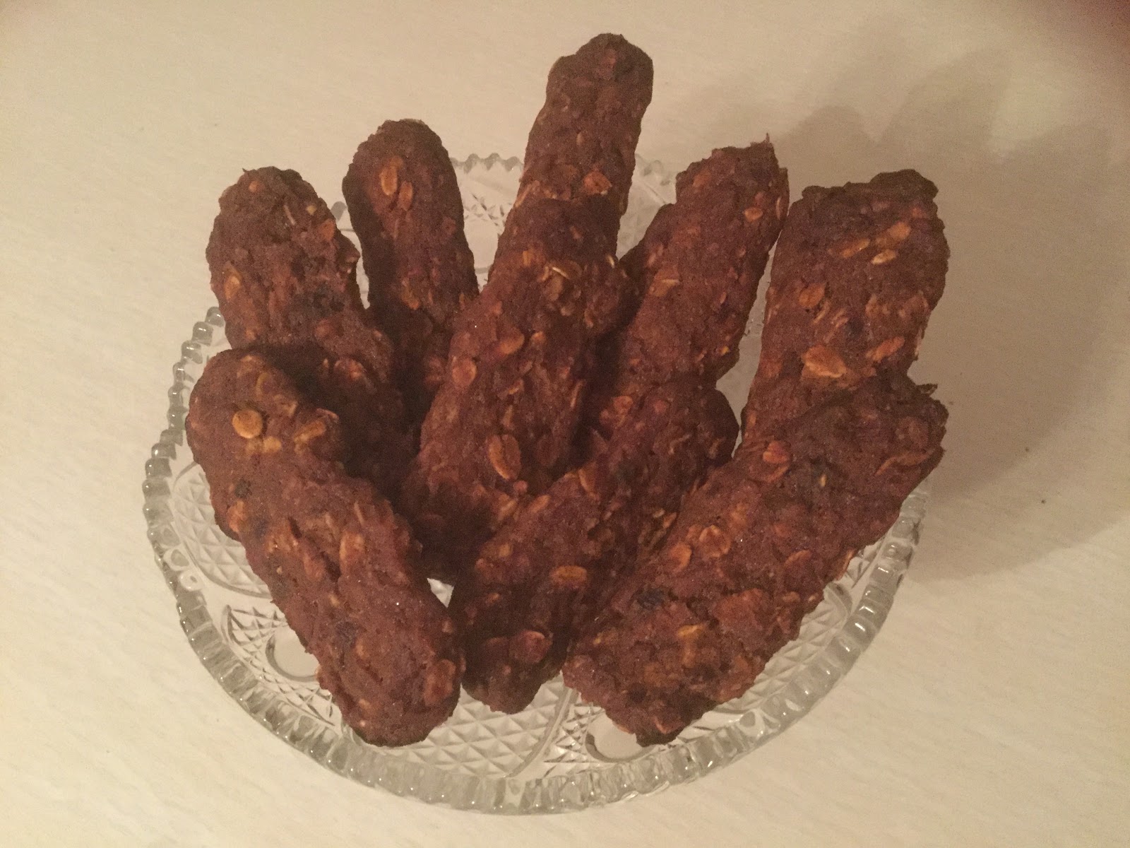 Kuivata patukoita uunissa 150 asteessa noin 60-75 minuuttia, tai kunnes patukoiden pinta on selkeästi kuivunut ja ne pysyvät kasassa nostettaessa. Halutessasi voit myös kuivata patukat kuivurilla tai 45 asteisessa uunissa, jolloin ainekset pysyvät raakoina. Tähän kuluu noin 24 tuntia.