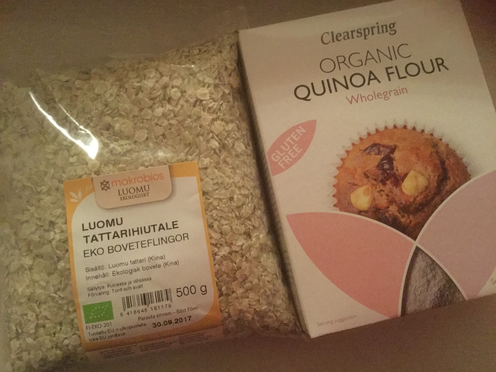 | luomu tattarihiutaleita sekä kvinoajauhoa |