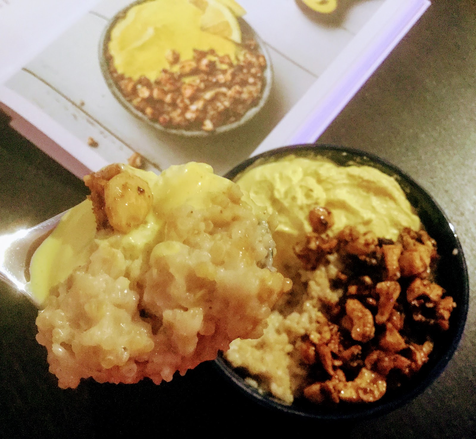 Ainut vaikeus oli osata valita minkä puuron oikein kokeilen ensimmäiseksi kaikista mukana olevista ihanista ohjeista. Päädyin lopulta kaurahiutaleiden ja kvinoan sekoituksella tehtyyn puuroon, jonka päälle tulee sitruunakermaa ja lakupähkinöitä. Annos kuulosti ja näytti niin herkulliselta, että odotukseni olivat korkealla.