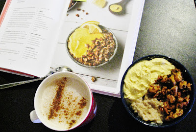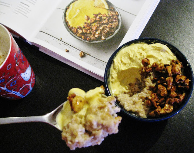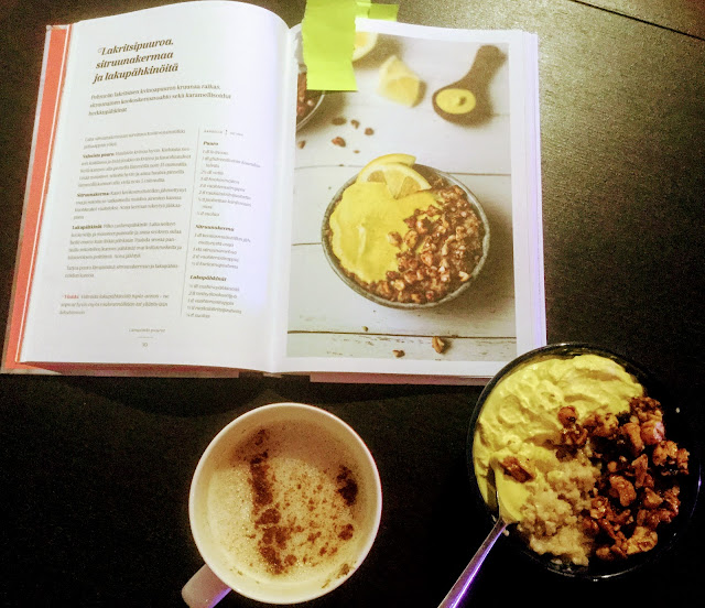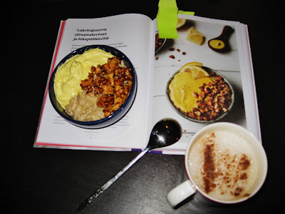 Puuron uusi aika on täynnä mitä ihanimpia ja mielikuvituksellisimpia ohjeita erilaisiin terveellisiin, ravitseviin ja maistuviin herkkupuuroihin, vanukkaisiin ja jogurtteihin, joilla omia puurohetkiä voi elävöittää ja muunnella loputtomasti. Monet kirjan ohejista houkuttelivat heti, enkä ole moisia herkkupuuroja osannut tulla itse edes ajatelleeksi. Joten tartuin innolla toimeen.