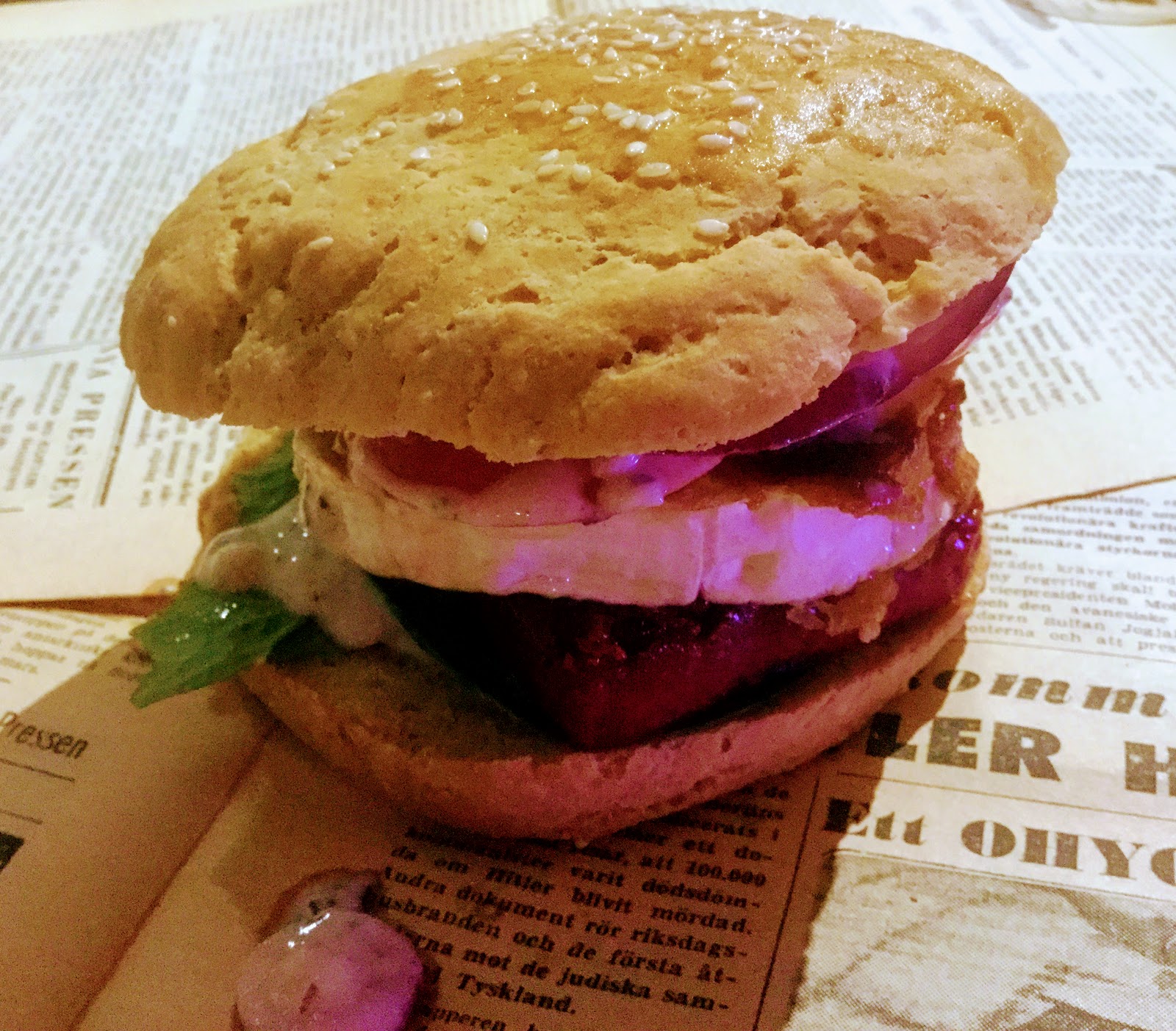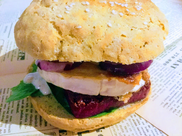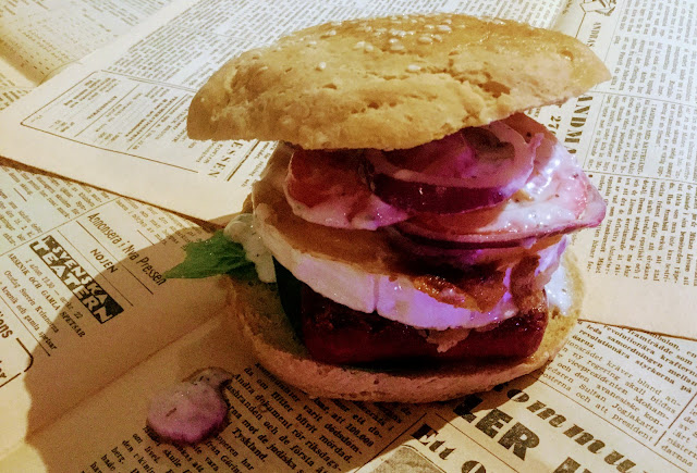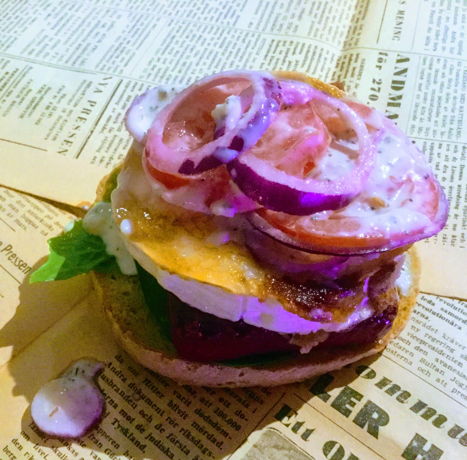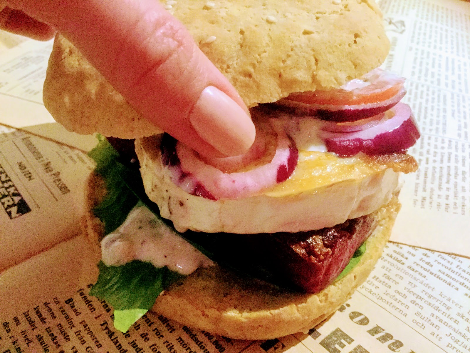 HUOM. Vuohenjuuston paistaminen onnistuneesti vaatii tehokkaan paistolevyn, sillä liian miedolla lämmöllä juusto alkaa vain sulaa. Mikäli oma paistolevysi ei kuumene tarpeeksi, älä huoli, sillä voit aivan hyvin jättää vuohenjuuston paistamatta ja laittaa sen hampurilaisen väliin sellaisenaan.