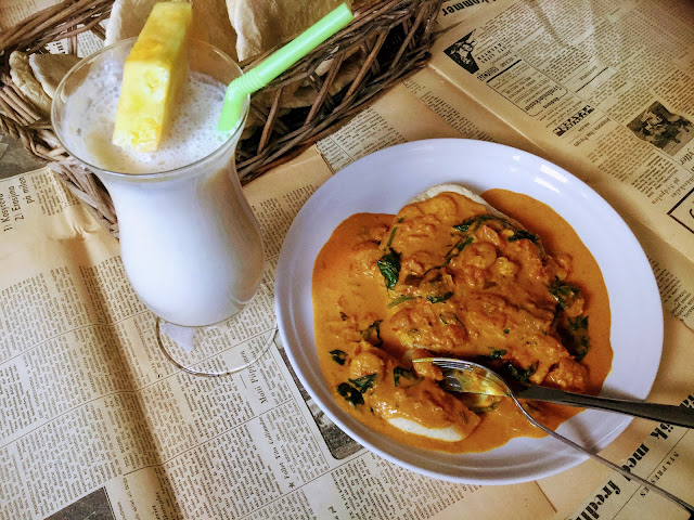 Raikkaan ananaslassin kanssa saimme tästä helposta intialaisesta currysta jälleen erittäin maistuvan sunnuntaiaterian.