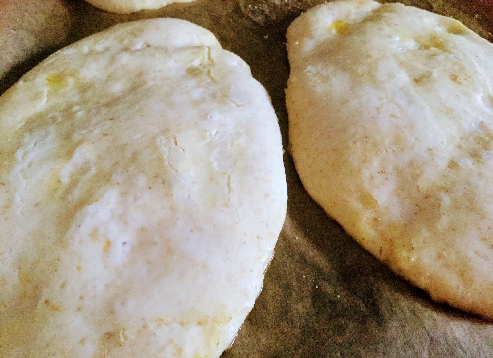 Sekoita kaikki kuivat ainekset erillisessä kulhossa. Lisää kuivia aineksia nesteseoksen joukkoon vähän kerrallaan, kunnes olet saanut aikaiseksi taikinan. Lisää jogurtti ja oliiviöljy taikinan sekaan, ja vaivaa käsin hetki, kunnes saat taikinaan hyvän sitkon.