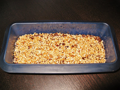 Painele massa esimerkiksi leivinpaperilla vuorattuun leipävuokaan tasaiseksi levyksi. Halutessasi voit ripotella vielä päälle esimerkiksi mantelirouhetta.
