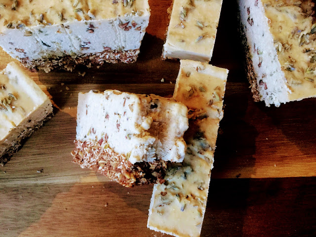 Kiireisten viikkojen aikana olen todella päässyt hullaantumaan laventeliin. Laventeliin ihastuminen voi vaatia tottumattomalta hetken aikaa, mutta kun laventelin makuun pääsee ei enää olekaan päivää ilman. Laventelitee on klassikko, jossa tämä kukkaismauste toimii loistavasti. En ole viime aikoina Kuitenkaan kaivannut kuumaa teetä, mutta sitäkin enemmän maukkaita raakaherkkuja, minkä vuoksi yhdistin laventelin täydellisen kermaisiin raakasuklaapatukoihin. Laventeli-raakasuklaapatukat ovat hurmaava kombo täyteläistä suklaata ja lempeän rauhoittavaa, huumaavan tuoksuista laventelia.