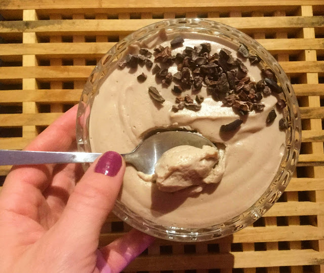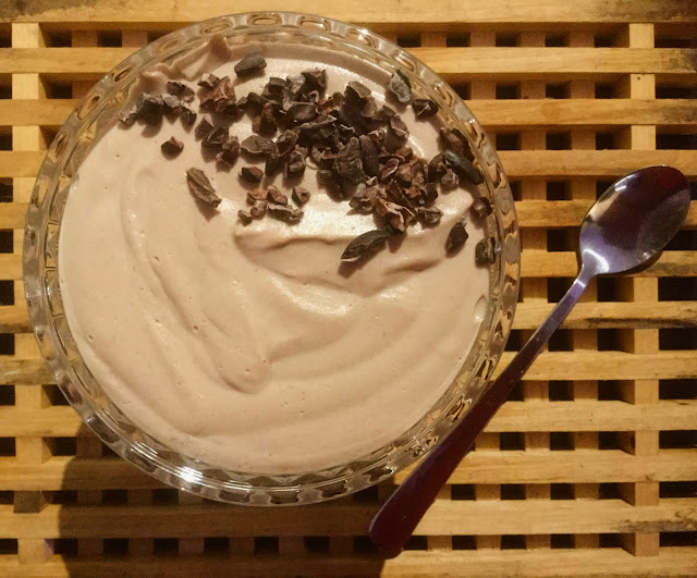 Pilko tofu pienemmiksi paloiksi ja sekoita tehosekoittimella tai sauvasekoittimella yhteen muiden ainesten kanssa. Voit säädellä vanukkaan paksuutta kasvimaidon määrällä. Itse tykkään paksummasta vanukkaasta, joten en laittanut nestettä kovin paljoa.