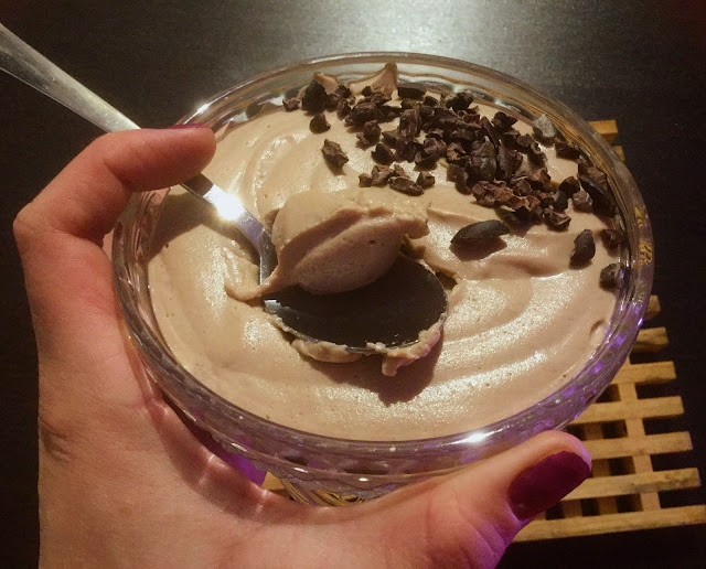 Pilko tofu pienemmiksi paloiksi ja sekoita tehosekoittimella tai sauvasekoittimella yhteen muiden ainesten kanssa. Voit säädellä vanukkaan paksuutta kasvimaidon määrällä. Itse tykkään paksummasta vanukkaasta, joten en laittanut nestettä kovin paljoa.
