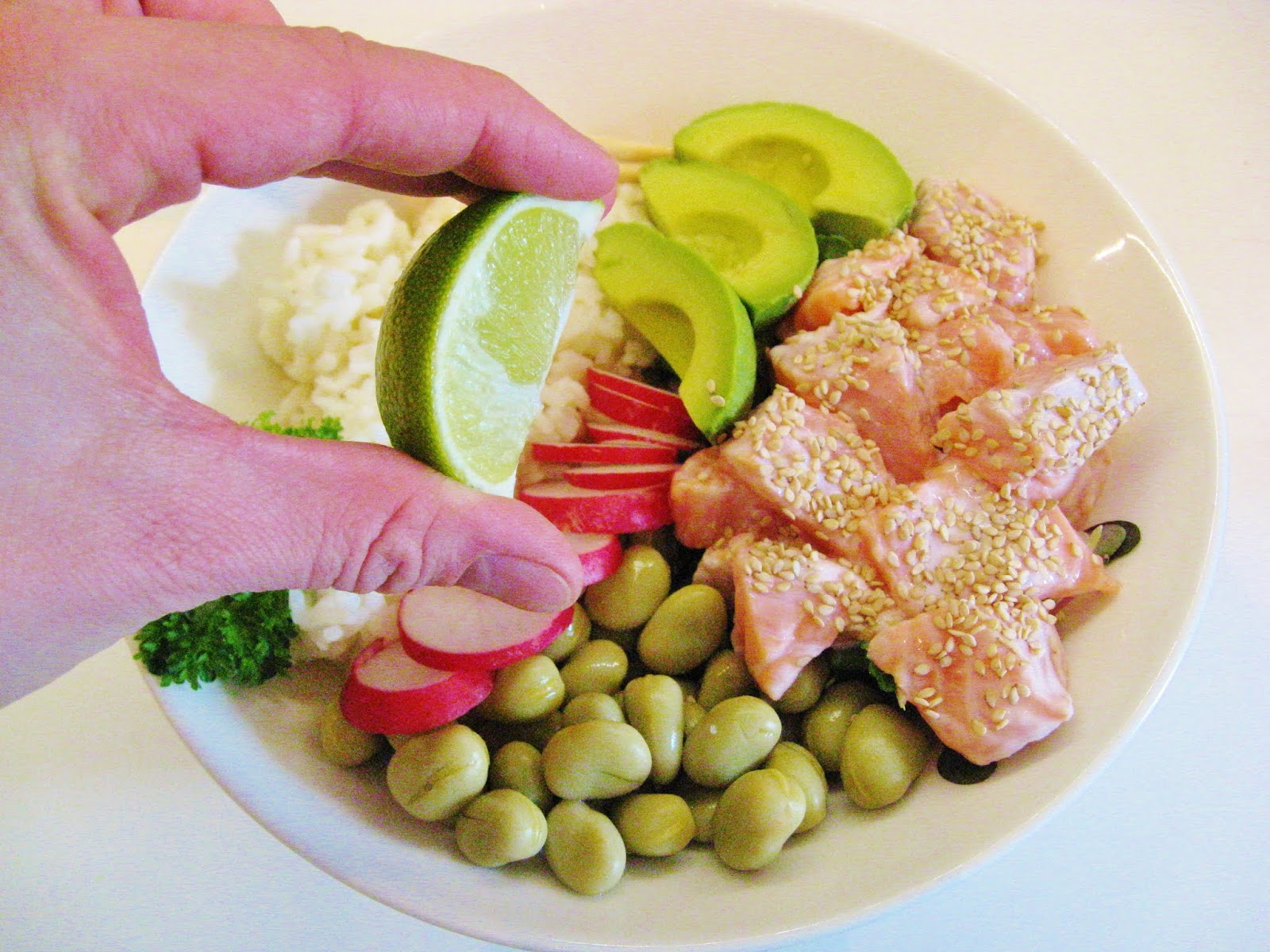 Tässä lohi poke bowlissa käytin kermaista kookosta yhdessä pirteän sitruunan ja raikkaan hapokkaan omenaviinietikan kera. Sopii muuten loistavasti juuri lohen kanssa! Mikäli kookos ei sinulle maistu, kokeile vaihtaa kookosmaito vaikka soija- tai chilikastikkeeseen.
