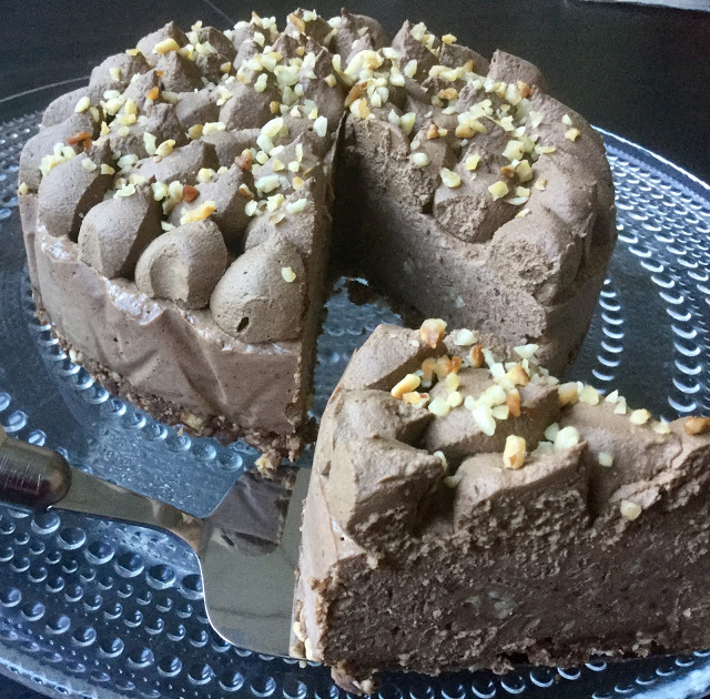 Juuri niin ihanaa kuin miltä kuulostaa, hasselpähkinän ja täyteläisen suklaan makuinen raakakakku, josta ei voi olla pitämättä!