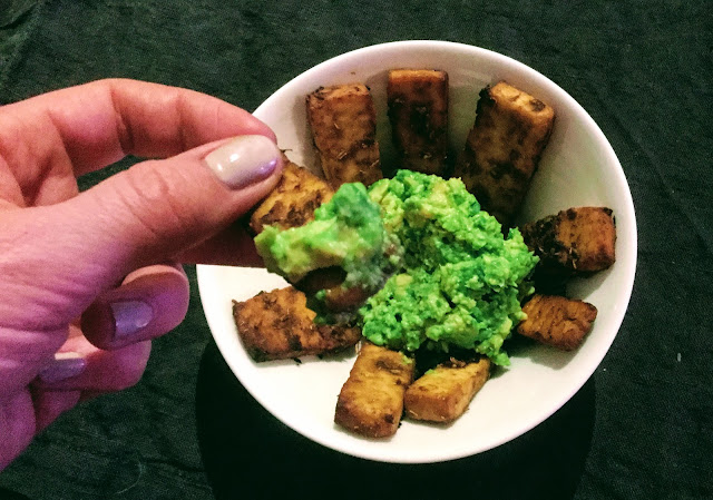 Harmittelin, ettei jääkaapista löytynyt maustamatonta jogurttia, sillä se olisi varmasti mausteilla tuunattuna sopinut hyvin. Mutta ennenkin hätävarana toiminut avokadodippi toimi myös! Se onkin yleensä takuuvarma valinta ruokaan kuin ruokaan.
