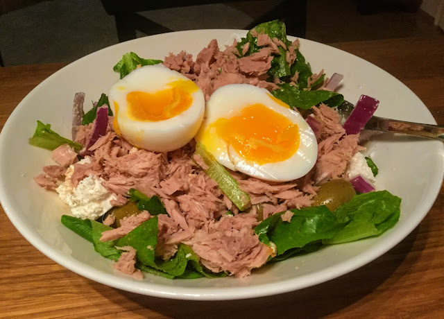 En ole tehnyt tonnikalasalaattia vuosiin, kenties juuri siksi, että tuo juhliminen on jäänyt aika paljon vähemmälle? Halusin kuitenkin pitkästä aikaa kokeilla onko salaatti niin hyvää kuin muistan.