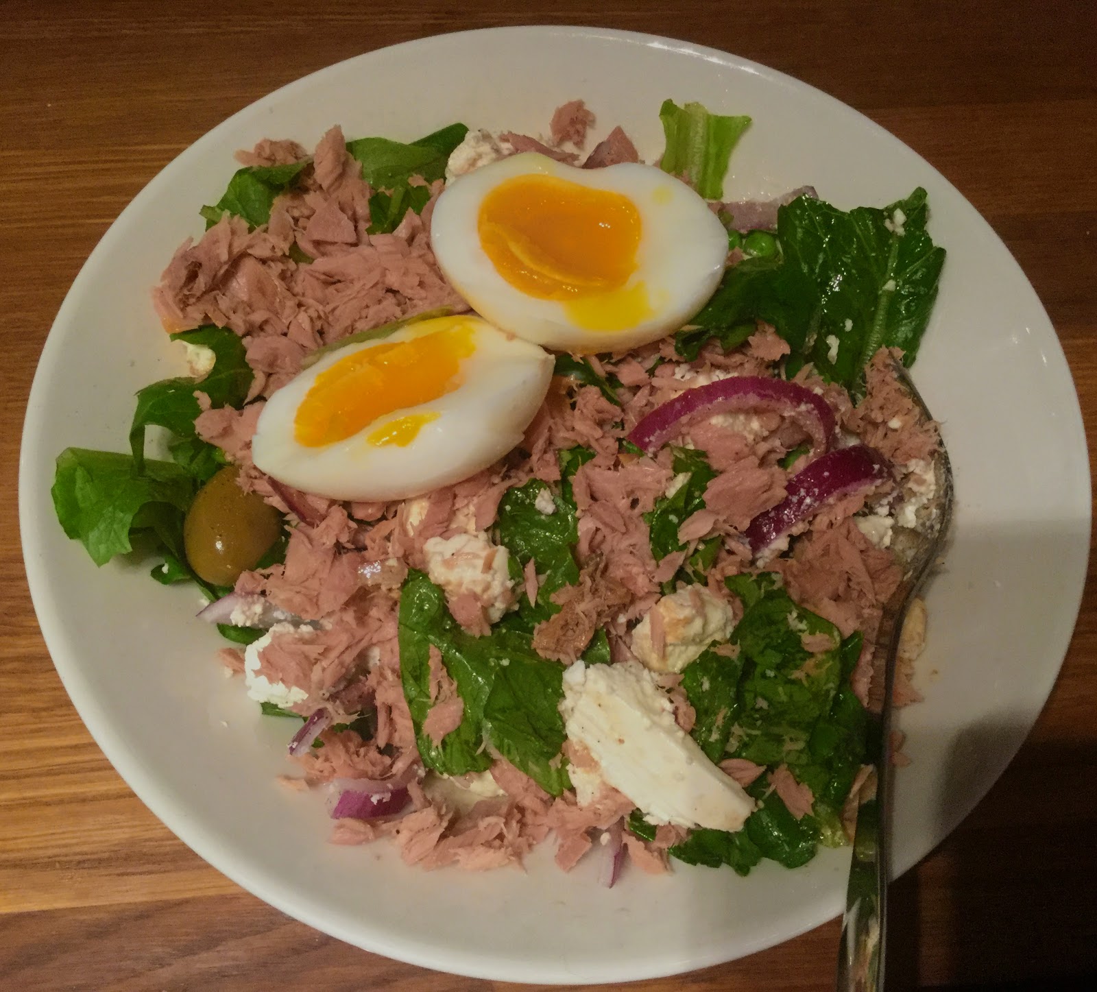Salaatti valmistuu suunnilleen samassa ajassa kuin kananmunat kiehuvat. Varsin helppoa ja nopeaa siis. Jos tonnikala on makuusi, kannattaa kokeilla tätä salaattia, sillä yksinkertaisuudestaan huolimatta siinä on runsaasti makua ja tonnikala pääsee todella oikeuksiinsa!