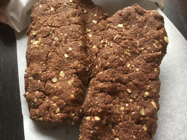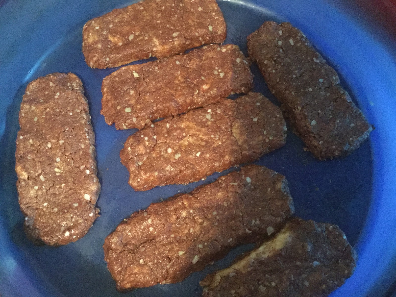 Sulata kookosöljy ja sekoita kaikki ainekset yhteen. Muotoile taikinasta sopivan kokoisia patukoita uunipellille, ja paahda uunissa 175 asteessa noin 30 minuuttia.