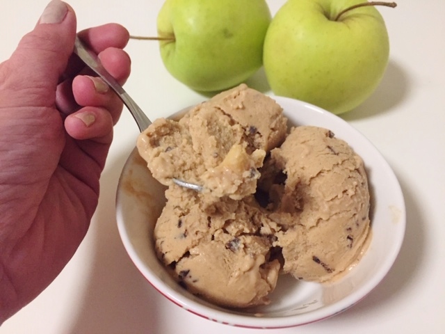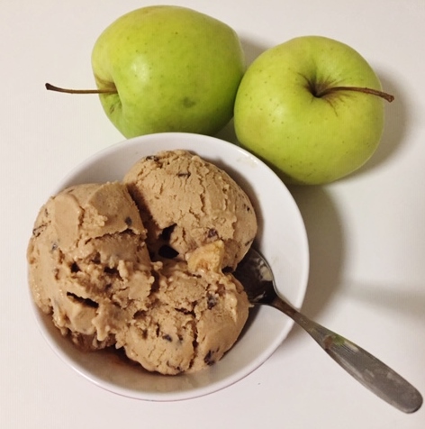 Tähän omena-kaneli jäätelöön päätyi lopulta sekaan myös maapähkinävoita, koska ajattelin sen tekevän jäätelön koostumukselle hyvää. Lisäksi minulla on menossa aika voimakas maapähkinävoi-kausi, enkä saa tuosta ihanasta tahnasta tarpeekseni! Välillä minun ei tee niinkään mieli aamupuuroa, vaan nimenomaan sitä pähkinävoisydäntä puuron seassa. Ihan paras tapa aloittaa aamu, etenkin kylmään aikaan vuodesta.