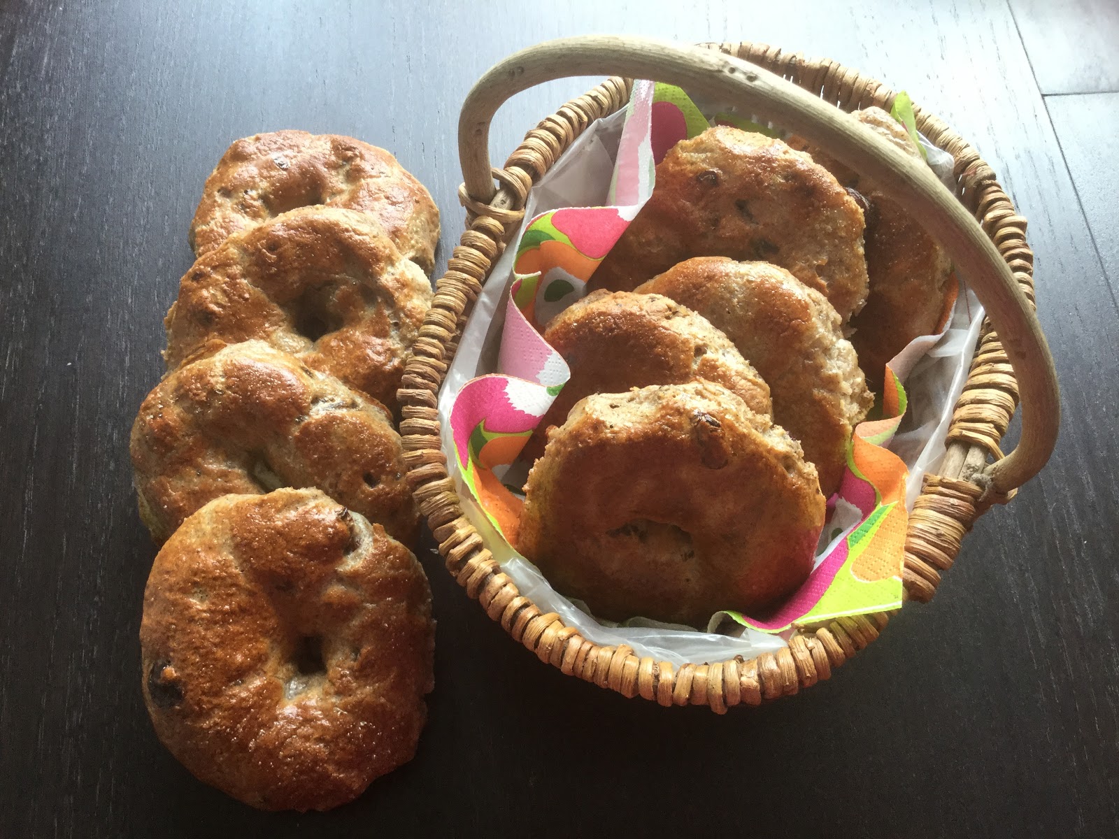 Bagelit ovat olleet suuri rakkauteni jo vuosia. Aikoinaan matkustaessani Ameriiikan mantereelle bageleita oli saatava aina kun mahdollista. Asuessani vuoden USA:ssa bageleita kului päivittäin – joskus useampikin. Ennen erikoisruokavaliolle siirtymistä opin tekemään täydellisiä bageleita, ja olen haaveillut niistä siitä lähtien. Vaihtoehtoisia bageleita en saanut onnistumaan, enkä sitten edes aikoihin viitsinyt yrittää. Mutta sitten… Tässä ovat täydelliset gluteenittomat kaneli-rusina bagelit! Että voikin yksi leipomus tehdä niin onnelliseksi.