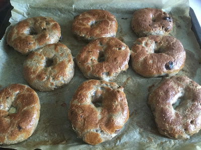 Asettele bagelit uudelleen uunipellille, ja paista 220 asteessa noin 30 minuuttia tai kunnes niiden pinta on kauniin ruskea.