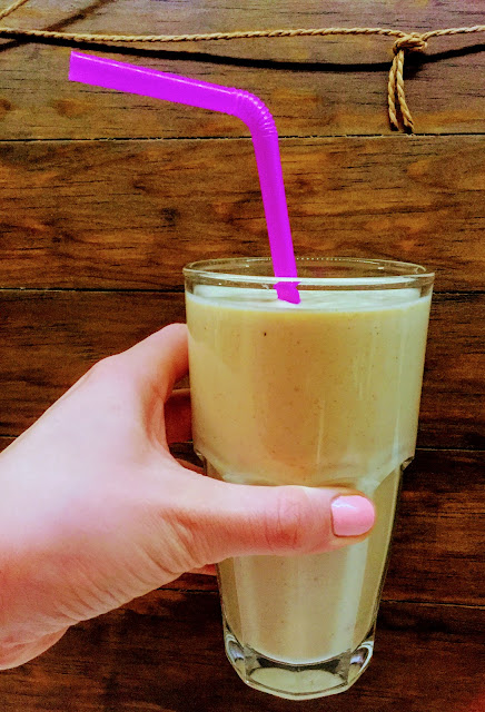 Banaani-pähkinävoismoothie on runsas ja täyttävä smoothie, joka toimii erinomaisesti aamupalana. Kokeilin banaanismoothiea ensimmäisen kerran aikanaan minipaaston aikana, kun halusin tehdä varmasti täyttävän aamupalan ensimmäiselle paastopäivälle. Mietin, että liian kevyellä aloituksella paasto tulee epäonnistumaan. Normaalina aamuna tämä banaanismoothie olisi sen sijaan turhankin täyttävä muun aamiaisen ohessa, ainakin isompana satsina. Siksi se onkin paras niihin aamuihin, kun aamupalana on pelkkä smoothie.