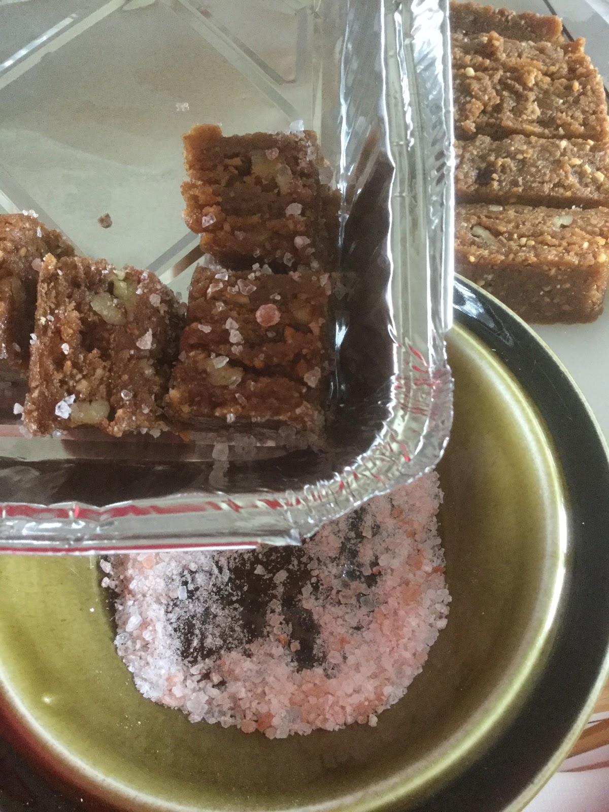 Murskaa ruususuolapaloja pienemmäksi, mutta älä hienonna täysin sileäksi. Leikkaa valmis toffee sopivan kokoisiksi paloiksi ja pyöräytä palaset suolarouheessa. Varo, ettet suolaa liikaa. Parasta on ensin maistaa yksi, jotta tiedät onko suolan määrä sinulle sopiva. Ja tässä vaiheessa olet ehdottomasti ainakin yhden toffeemaistiaisen ansainnutkin!