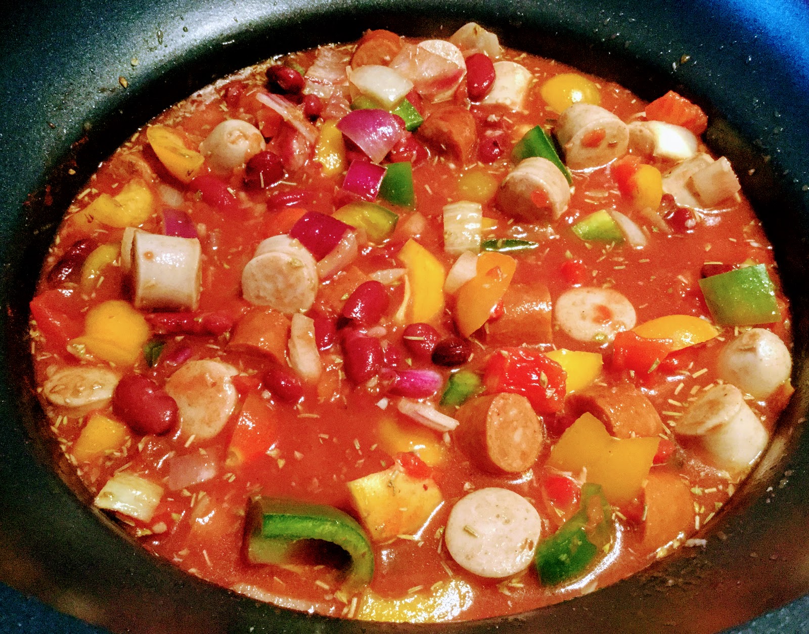 Makkaran määrä padassa ei ole niin tarkka, sinne sopii hyvin isompikin määrä, jos kaipaat sitä erityisen paljon. Pienemmälläkin määrällä saa hyvää makua, etenkin, jos pilkot makkarat mahdollisimman pieneksi. Sillä tavalla saat enemmän palasia ympäri pataa.