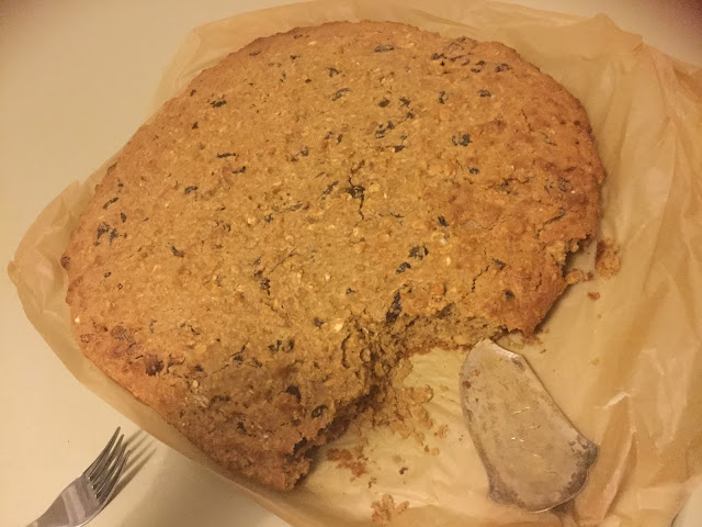 Monenlaista hyvää siis yhdessä. Jätticookie ei ollut kovin makea, mutta ei tietenkään suolainenkaan. Sopi mainiosti osaksi iltapalaa, täyttävää ja terveellistä, mutta lasten mielestä herkun puolella. Jos haluat erityisen makeaa, lisää sekaan kiteistä makeuttajaa, kuten kookossokeria. Voit myös käyttää nestemäistä, mutta vähennä silloin kauramaidon määrää.