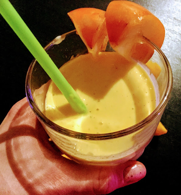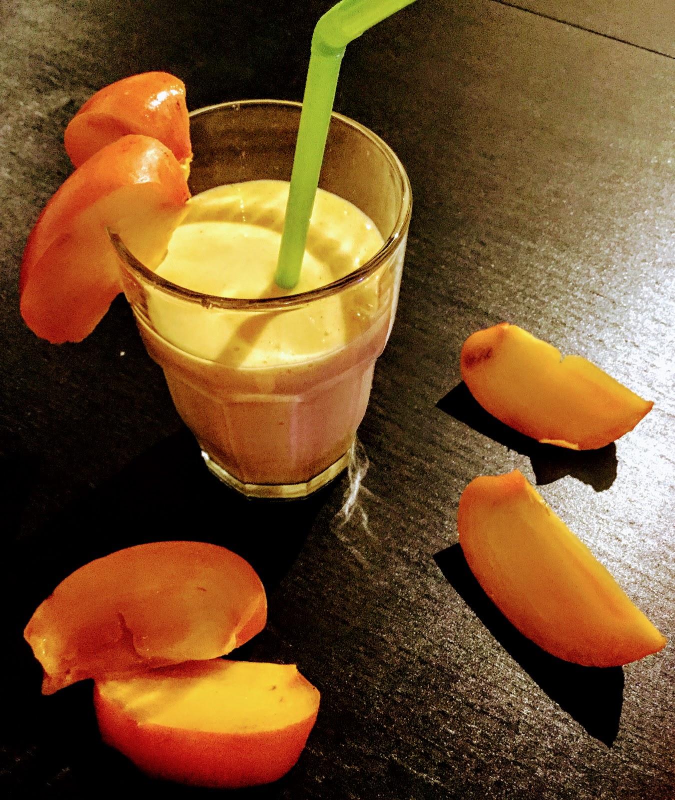| Käytin kuvatussa erässä persimonia, vaikka nektariinit ovat nyt paremmin sesongissa. Persimonia piti hankkia erästä toista leipomusta varten, joten pääsi käyttöön tähänkin sekä isosti esille kuvissa, koska niitä sattui olemaan hedelmäkulhossa jäljellä. Kuvissa siis erityisesti persimonia, toisin kuin sitä kukkakaalia, mikä on tämän smoothien pääraaka-aine. Persimon jogurttia voin suositella myös, siihen ohje täällä. |