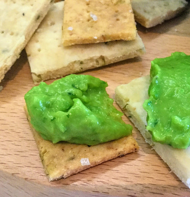 Gluteenittomat suolakeksit ja helppo herne-avokadolevite