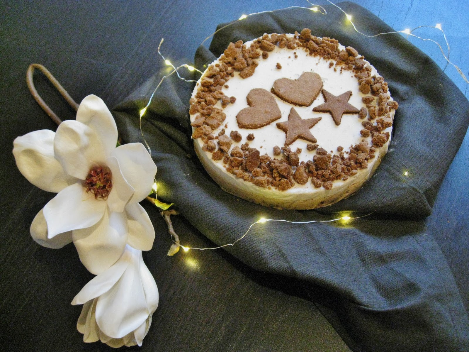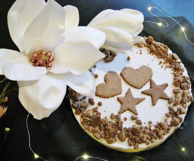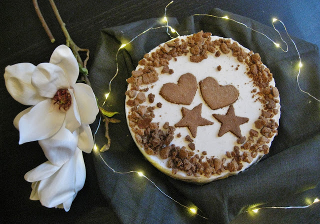 Halusin tehdä kakun ilman pähkinää, jotta se sopisi mahdollisimman monelle, ja mousseen saisi juustokakkumaisemman koostumuksen. Raakakakusta ei ihan voida puhua, koska piparit on totta kai paistettu uunissa, mutta pipareita lukuun ottamatta ainekset on käytetty raakoina ja siten saatu säilytettyä niiden kullanarvoiset ravinteet.