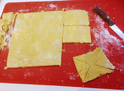 Levitä pöydälle joko peruna- tai riisijauhoa, ja kumoa taikina jauhojen päälle. Kaulitse isoksi levyksi. Voit leikata taikinasta sopivan kokoisia paloja ja taitella tortut itse, tai käyttää muottia.