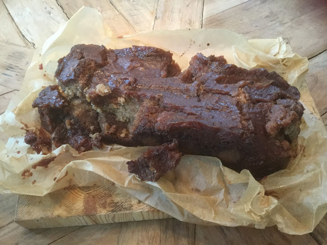 Käytin itse leivinpaperilla vuorattua leipävuokaa, mikä osoittautui ohjeen taikinamäärälle varsin sopivan kokoiseksi.