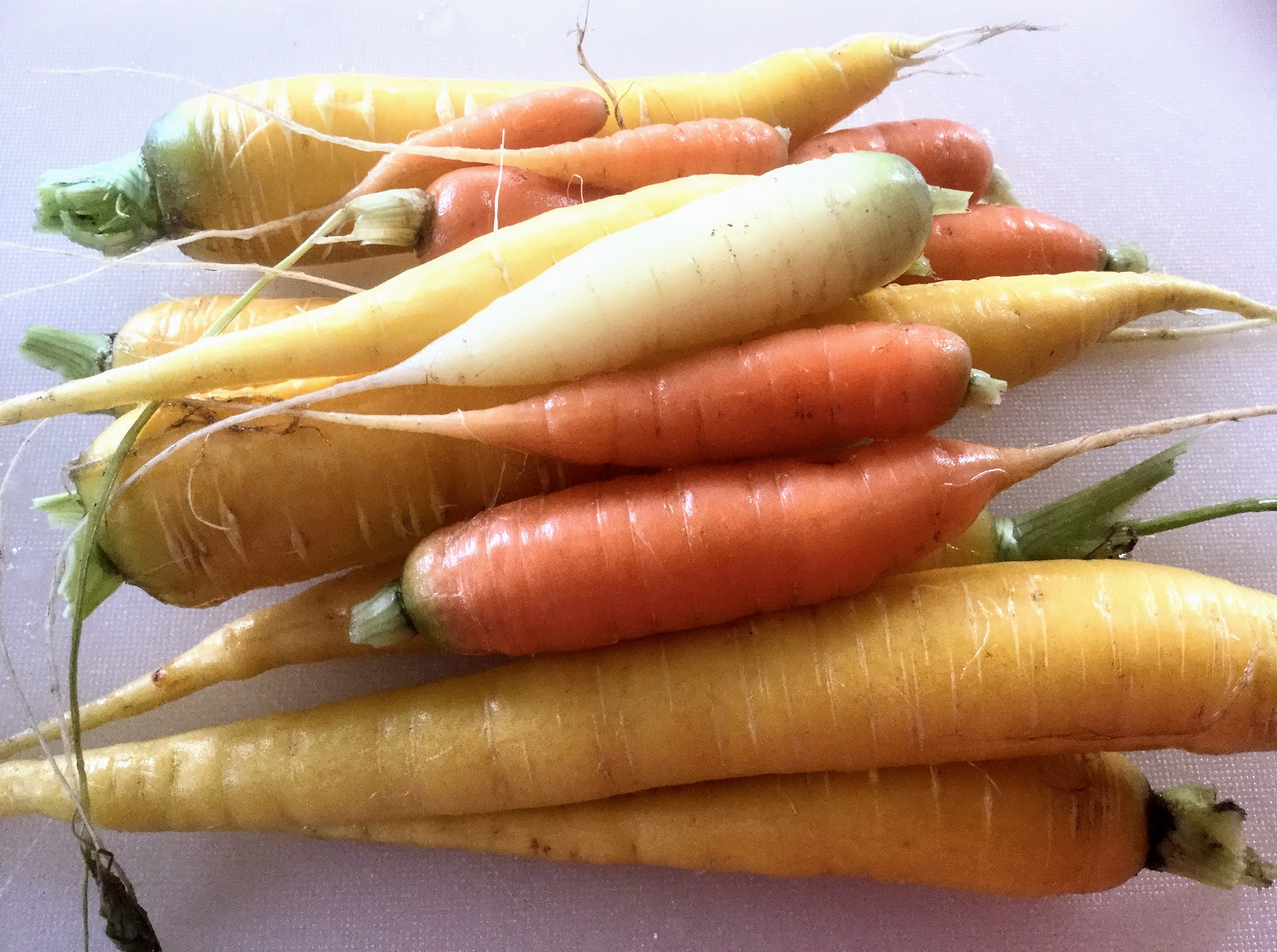 Leivoin keksejä itse mökillä, ja käytin omasta maasta nostettuja porkkanoita, joita oli useampaa eri väriä. Keksien lopulliseen ulkonäköön porkkanoiden värikkyys ei lopulta juuri luullakseni vaikuttanut, koska kekseistä tulee kuitenkin ruskeita.