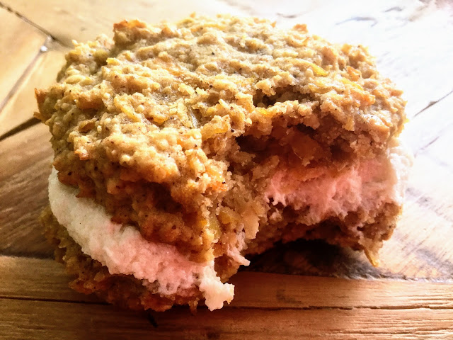 En säästellyt porkkanaraasteen määrässä, ja hyvä niin, koska porkkanaraaste maistuu ihanasti makean ja kermaisen täytteen rinnalla. Raaste tekee kekseistä pehmeitä ja kosteita. Raaste antaa myös kekseille mukavaa suutuntumaa, sekä lisää tietysti samalla päivän aikana nautittujen kasvisten määrää ihan huomaamatta!