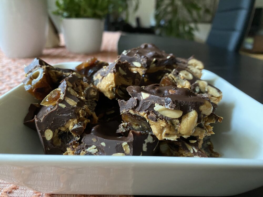 Kun näin tämän reseptin, tuli pitkästä aikaa täysi pysähdys. Ja olo että tätä on pakko päästä kokeilemaan. Viraaliksi mennyt ohje on jaettu jo lukuisia kertoja eri ruokablogeissa ja somessa, mutta jokainen valitkoon omansa. Tällaiset luomukset kun tuppaa olemaan tekijänsä näköisiä, ja niihin vaikuttaa tosi moni asia aina taateleiden laadusta käytössä olevaan pähkinävoihin. Oman ohjeen nappasin Eating bird food – blogista. Ja kyllä, Date bark on juuri niin hyvää kuin miltä se näyttää. Tai ei – parempaa!