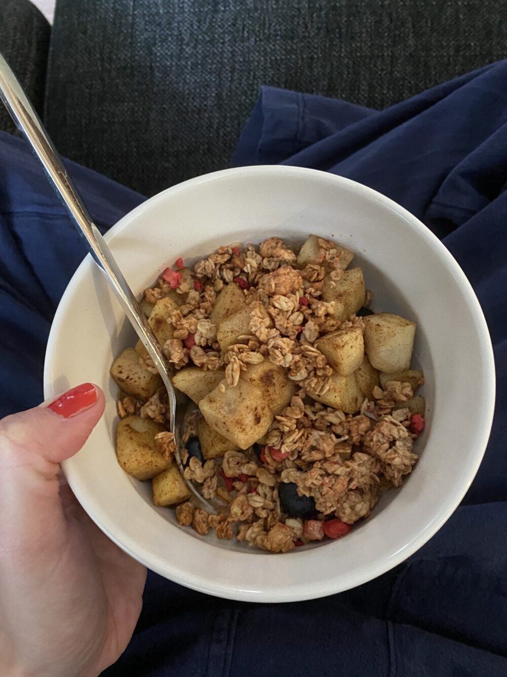 Alpro sokeriton mango-omena jogurtti – Tässä maistuu se sokerittomuus, koska ei tosiaan ole tippaakaan makeaa. Mukavan paksu koostumus. Ja maku just täydellisen neutraali, että sopii hyvin granolan, marjojen tai vaikka banskuviipaleiden kanssa.