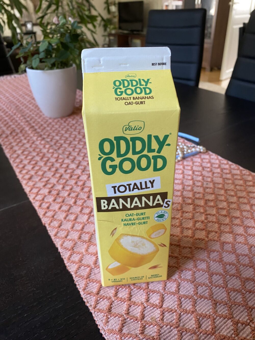 Oddlygood banaanijogurtti – Nostalginen lapsuuden herkku! Maistuu ihan samalta kuin se banaanijogurtti mitä söin 90-luvulla, varmaan Valiota oli sekin. Raikasta, ihanaa, taattua banaanijogurtin makua!
