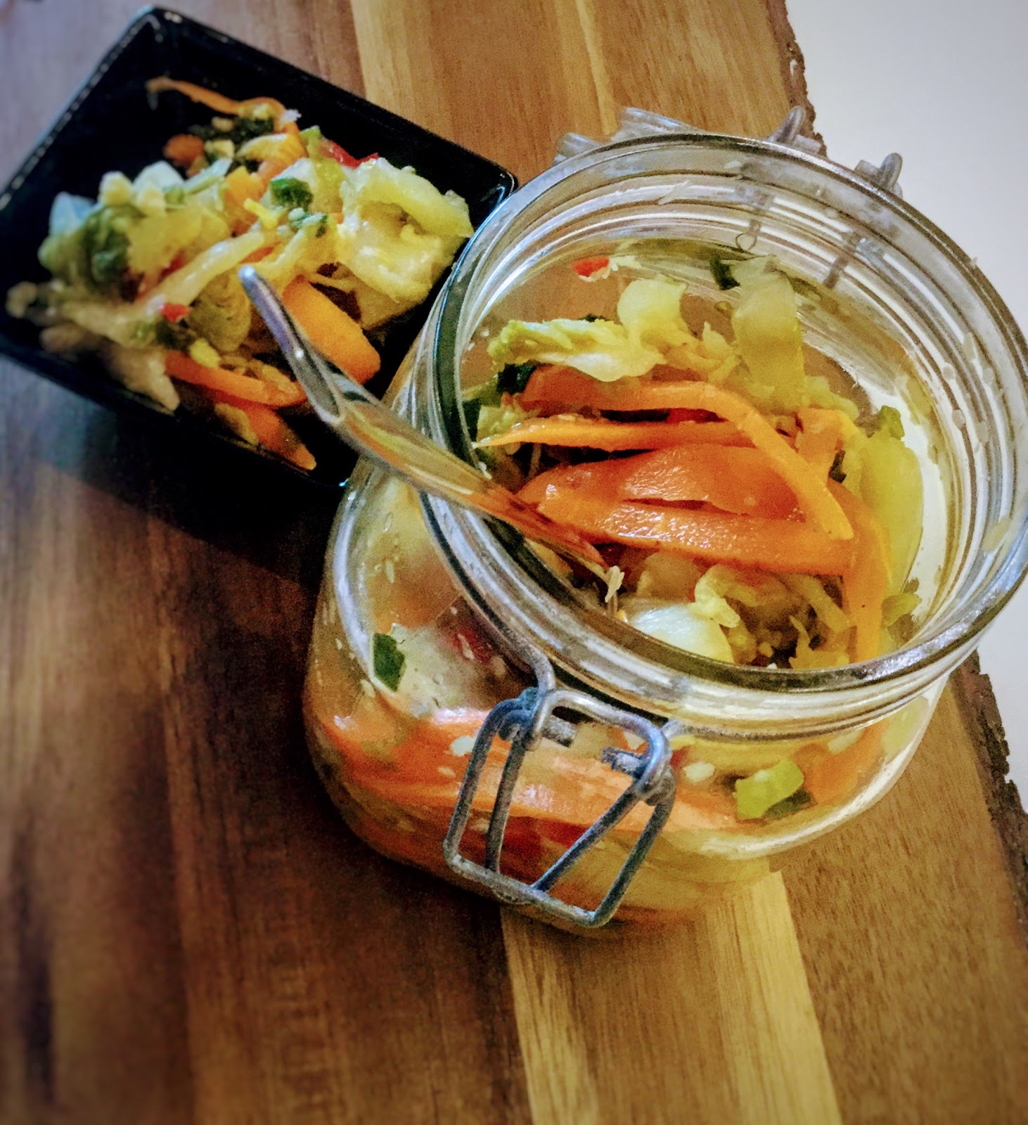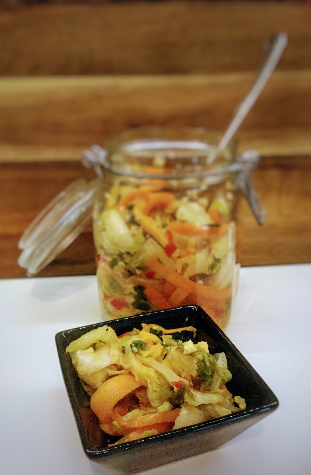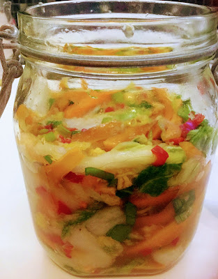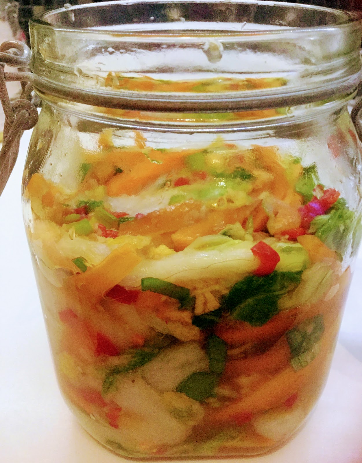 Kotitekoinen kimchi on maukas ja ravitseva lisuke ruokalautaselle. Meillä syödään paljon hapankaalia. Etenkin mieheni rakastaa sitä, ja hänet löytääkin purkki kädestä monta kertaa päivässä. Hapankaalia en ole koskaan tehnyt itse, mutta käsittääkseni se ei olisi kovin vaikeaa. Sen sijaan kokeilin vaihtelun vuoksi kotitekoista kimchiä, aasialaisten omaa hapankaalia, jota kyllä joistakin kaupoista löytyy, mutta joka on melko tyyristä jatkuvaan käyttöön.