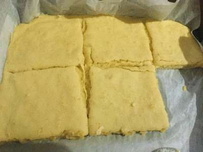Kaada taikina uunipellille leivinpaperin päälle ja anna sen turvota uunin lämpenemisen ajan. Turvotessaan taikina paksuuntuu jämäkämmäksi kuin sekoitusvaiheessa.