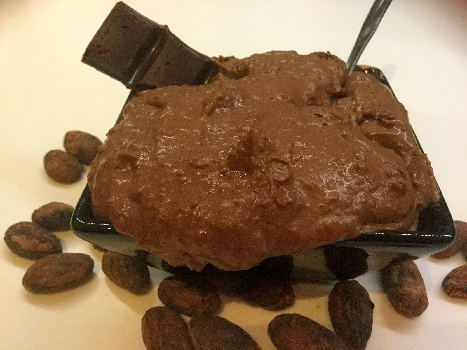 Sulata kaakaovoi vesi hauteessa. Valuta ja huuhtele pavut. Sekoita kaikki ainekset tasaiseksi massaksi tehosekoittimella tai sauvasekoittimella. Koita saada tahnasta täysin sileää ja paakutonta. Maista onko maku sinulle sopiva, ja lisää makeutusta tarvittaessa. Erytritoli on siitä kiva makeuttaja, että sitä voi huoletta lisätä, koska se ei sisällä lainkaan kaloreita. Se ei myöskään aiheita vatsaoireita, kuten makeutusaineet yleensä.