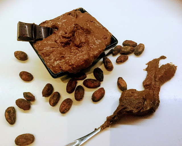 Halusin tehdä suklaatahnaa, mutta jouduin miettimään aika pitkään että minkä ihmeen kanssa sitä sitten söisi. En kuollaksenikaan ymmärrä nutellaleipiä, enkä muitakaan leivän päälle levitettäviä suklaalevitteitä. Jouduin kysymään itseltäni onko suklaalevitteelle edes tarvetta, ja tällaiselle suklaaholistille tuntui hurjalta joutua edes miettimään moista. Suklaalle on aina tarvetta. Ja tämä terveellinen raakasuklaatahna on mitä parhain lääke vallitsevaan epävarmaan, ahdistavaan tilanteeseen hellimään mieltä ja kehoa.